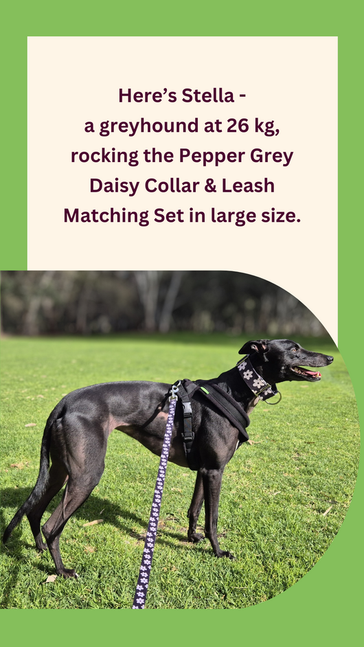 Perfect for beachgoers and the outdoorsy greys, Pepper Grey Martingale Collars are fast-drying and durable too.